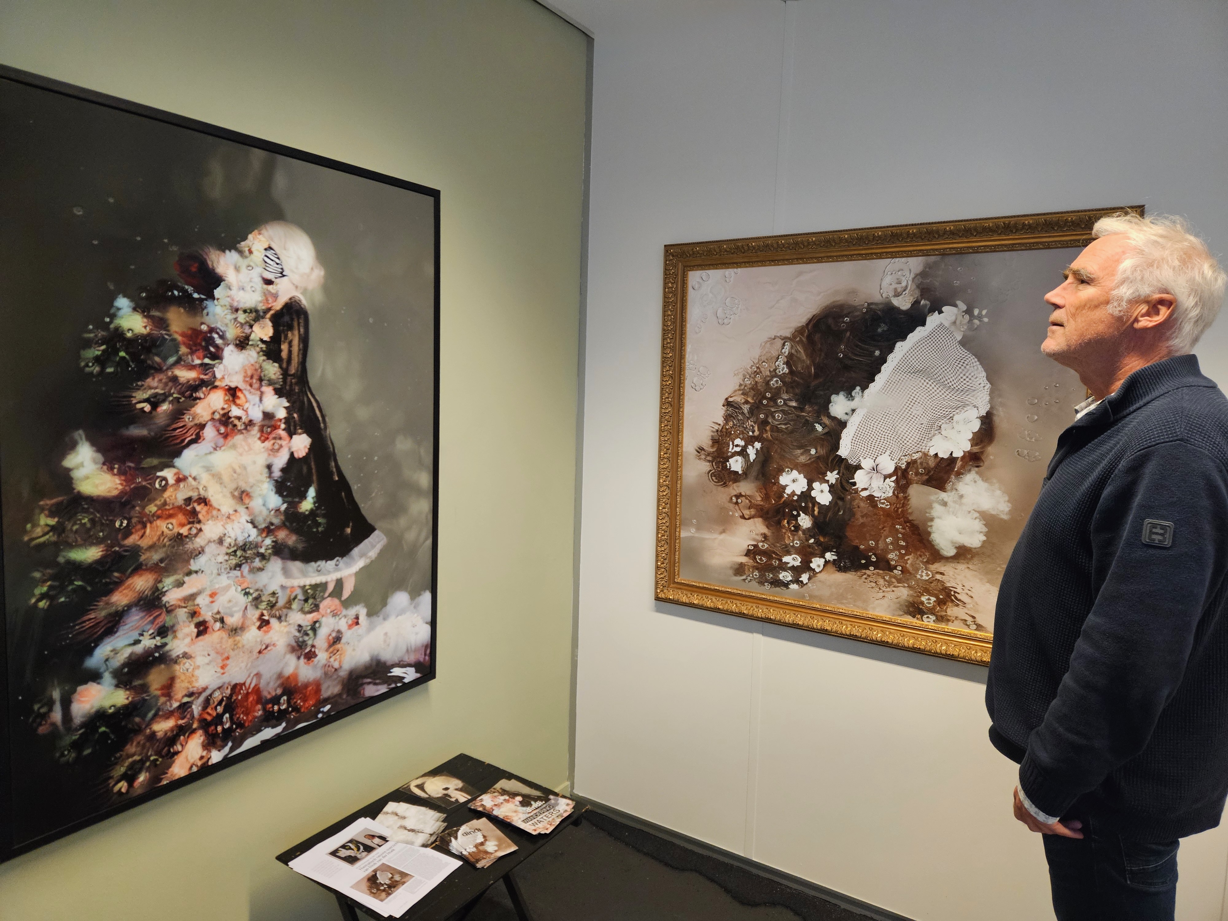 “Water blijft me fascineren en ik blijf daarbij de impact van water in mijn werk onderzoeken. Sterker nog, water is het enige element dat ik niet volledig kan beheersen. Het water zorgt ervoor dat zowel het geënsceneerde beeld als de surrealistische waterreflecties op een interessante en fascinerende manier in evenwicht komen. Water brengt een zekere spontaniteit in mijn werk, maar ook surrealisme en vervreemding van de realiteit, waardoor ik die diepere innerlijke lagen kan visualiseren”, vertelt Dindi.